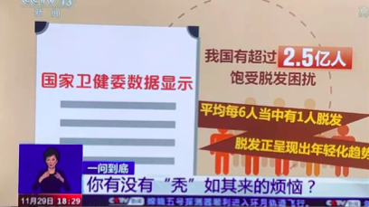 11月30日,相信很多朋友被一组关于脱发的数据扎了心。由国家卫健委数据显示,我国有超过2.5亿人正在饱受脱发,每6个人当中就有1人脱发。脱发正呈现出年轻化的趋势,大批90后已经加入到脱发大军中。
