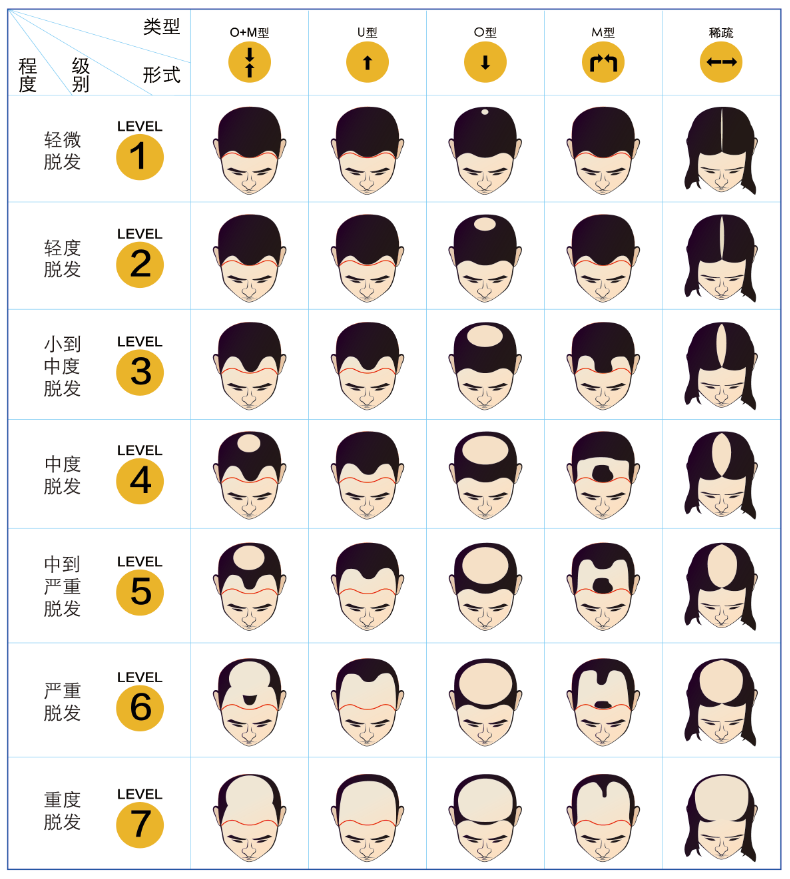 脱发等级示意图
