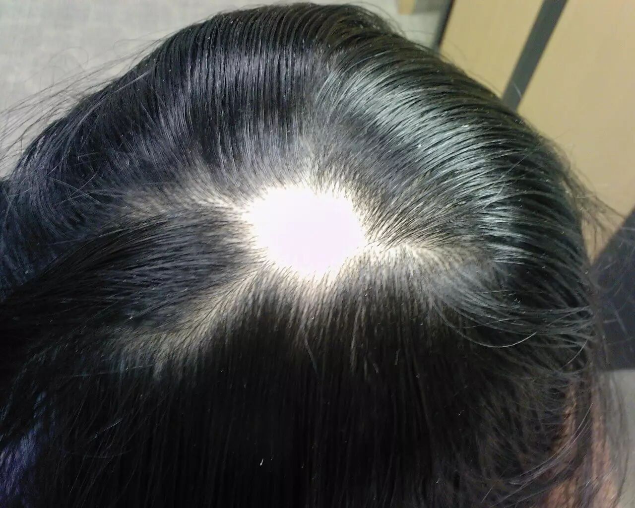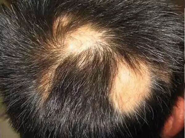 由于斑秃在发病时并无自觉症状,所以这个阶段也进展迅速,不知不觉你的头皮就“长”出了硬币大小,或者更大的不规则圆形脱发区。而且在斑秃区周边外观正常的皮肤上,毛发也疏松易抓落。