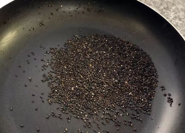 取一把黑芝麻放到碗中用清水洗净,放入锅中炒熟,放入碗中捣碎。