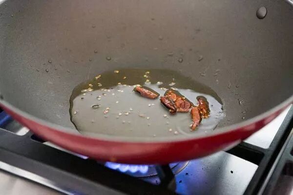 芹菜洗净切断,热锅下油,将辣椒下锅翻炒1分钟。