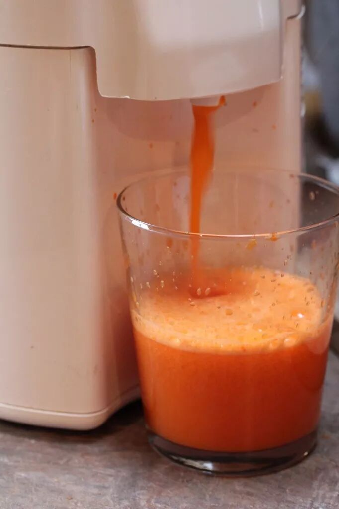 将胡萝卜羹过滤就可以得到一杯胡萝卜汁啦~