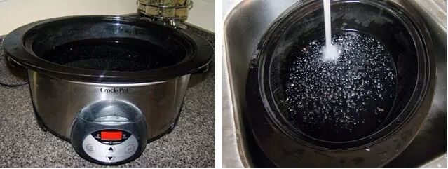 准备米醋和黑豆,锅中放入一点清水和米醋,倒入黑豆一起蒸煮,直到黑豆变成烂泥状。