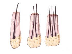 人一出生的时候,毛囊的数量就已经决定了,后面毛囊的数量只会越来越少,而不会变多。以男性来说,全身大约遍布500万个毛囊单位,其中头皮部位约有10万个,并且随着年龄衰老逐渐减少,毛囊是不可再生资源,因此如果一个毛囊完全萎缩或受伤消失之后,那就永远不可能再长出毛发了。