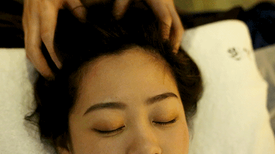 两手五指弯曲并拢,手指肚触碰到头皮,然后前后左右地对头皮进行按摩。刺激头皮穴位也是为了促进血液循环,同时缓解精神压力。