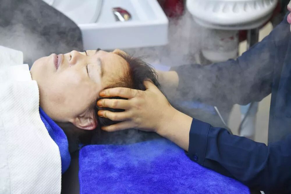 头疗,通过传统按摩、冲浇等技术,可以深层清洁毛囊,清除油脂及垃圾,排除头皮、毛囊中残留的毒素和代谢废物,打开头皮营养吸收通道。