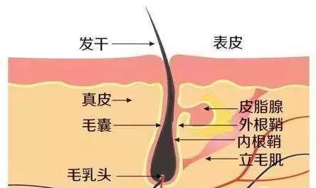 也就是无论毛囊上半部分的漏斗部、峡部,还是下半部的球部与茎部,扎根范围大都在表皮与真皮之间,只有最底层的毛乳头部分与皮下脂肪层的血管与神经相连,汲取血液营养,为毛囊与头发提供源源不断地营养支持。