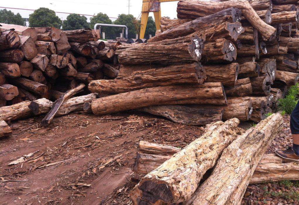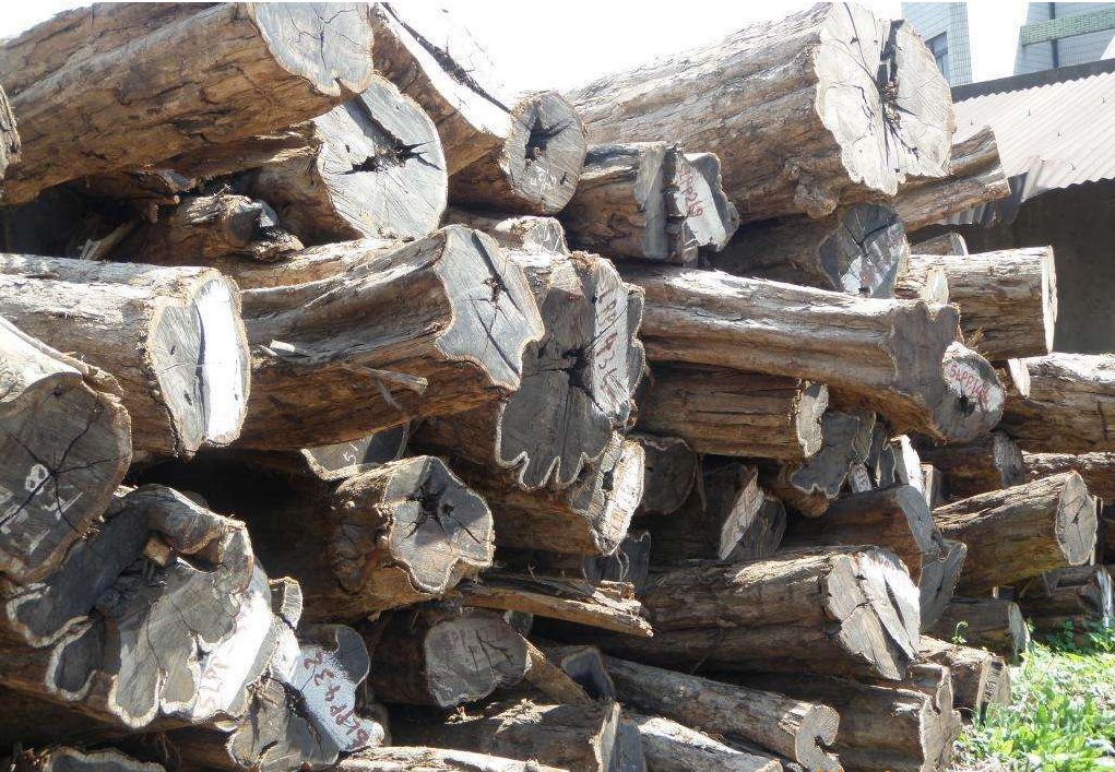 外观:原木外形难看,扭曲而多中空,加工也比较困难,出材率低,大多为直纹,纹理均匀细密,略显油性,边材窄,呈白色至淡黄色,心材呈深紫褐色,伴有黑色条纹。