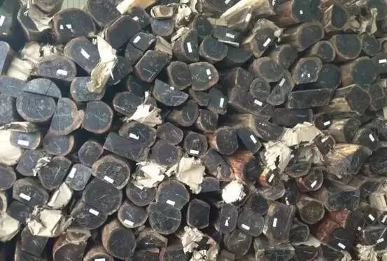 阔叶黄檀树径多在20-40厘米间;边材2-4厘米厚;树多弯曲,多分杈;树表常见1-5厘米长、1厘米宽小死结,被人形象地称为“老虎抓”;树心多开裂;有少量树木存在空心;锯末、新切面有酸味;心材耐腐、无虫蛀。