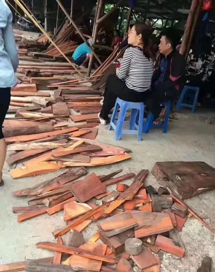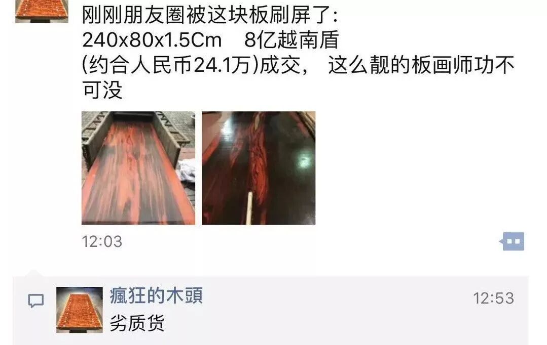 (在越南成交价就折到800万/吨的大红酸枝宽板,还是劣质货)