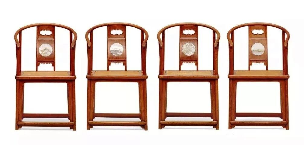 清早期 黄花梨镶大理石圈椅(四件)