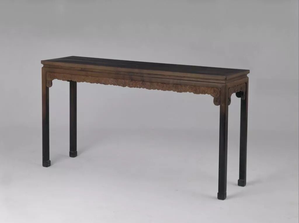 相比于崇尚简朴的雍正时期,最迟从乾隆十年开始,清代宫廷家具中,以紫檀为主要用材渐成主流,逐渐到达巅峰,从用材、器型、工艺几方面而言,此时特征鲜明的清代家具范式亦日趋成型,清宫紫檀家具也愈亦兴盛。