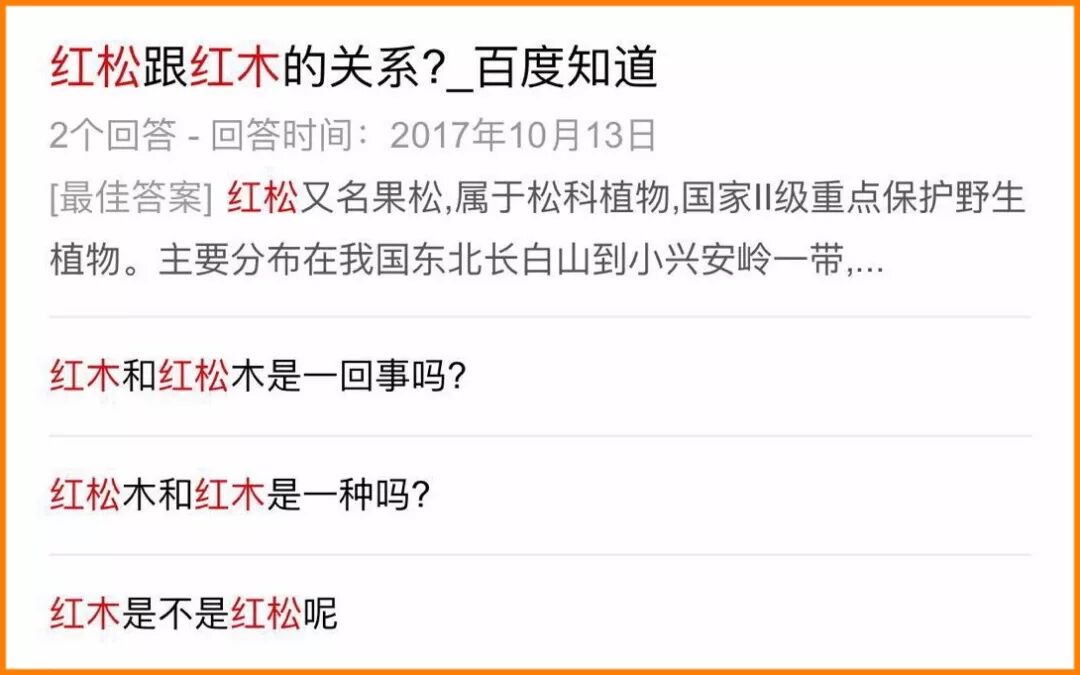 诸位只要了解有这些问题即可,请忽略那些“红杉是地球上仅存的红木科树种之一”的扯淡问答,也忽略“红枣木别名红檀、大红檀、大叶红檀”之类离谱的[最佳答案]!