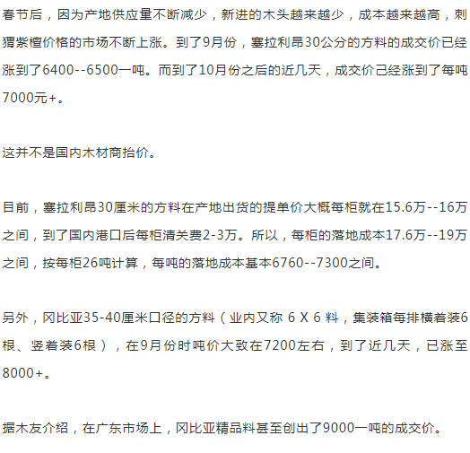 随着产地资源的快速枯竭,采伐成本急速上升。但因为近几年西非大部分国家的汇率都在不断走低,许多西非货币对人民币汇率在近几年跌了一半还多,形成对冲,所以产地的成本上升基本没有体现在国内的售价上。
