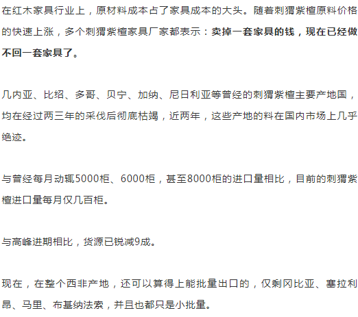 作为曾经占据了红木市半壁江山的“销量之王”,在大量消耗之下,产地资源快速枯竭,供应量急剧锐减。