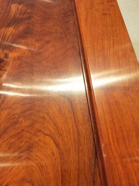 目前,大果紫檀家具市场蜡饰上,可分为“封闭”与“开放”两大类,采用“封闭”工艺的木材毛孔被蜡漆打磨平,光滑如镜,用手触摸感觉不到毛孔。
