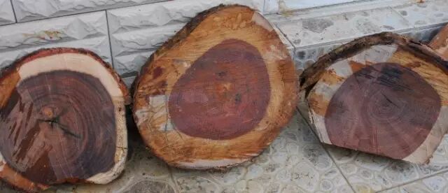 看看上图,两边都是红枝(交趾黄檀)北部料,中间一个就是花枝(巴里黄檀)。