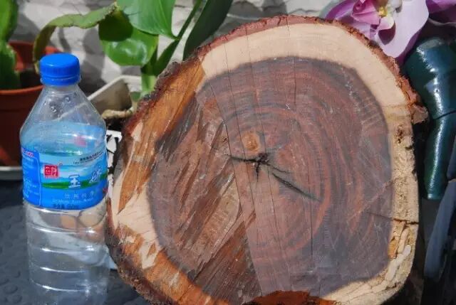上图也是同时采伐的老挝大红酸枝北部料,这算是北部料中黑筋最明显的了,但还是远不如南部料的黑筋粗大,不多,香味还是正宗老陈醋的那种。