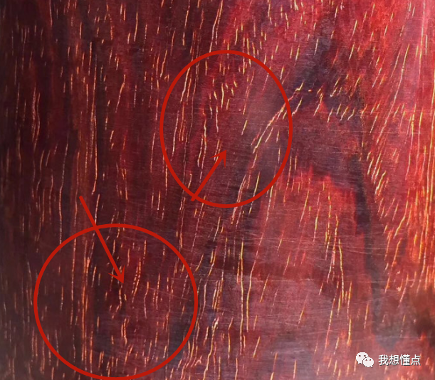 其次看纹理,小叶紫檀表面基本均是分布稀疏的牛毛纹
