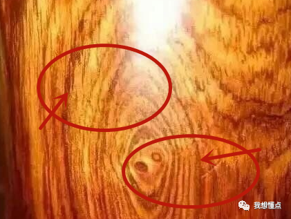 并且,相比缅甸花梨,非洲花梨表面是没有清晰纹理的,反而其表面会有明显的棕孔。