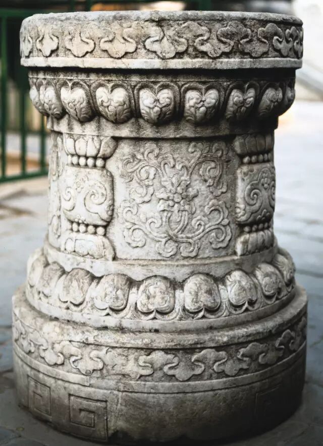 中国佛教文化中的雕刻题材十分广泛,大致有卷草、莲纹、云纹、螭龙纹等。其中以莲花作标志,代表“一方净土”,象征“纯洁干净”,寓意“吉祥如意”。
