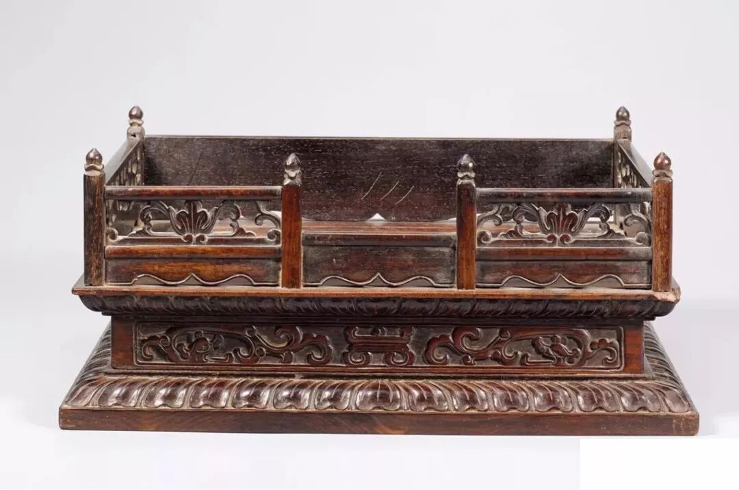 紫檀器物使用长久之后经汗水和油腻摩擦浸润会有“包浆”的质感。明朝以来的宫廷和达官显贵们,多用紫檀来制作佛龛、佛像、佛珠等法物和朝珠。