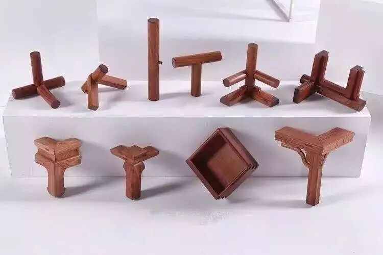 各种榫卯做法不同,应用范围不同,但它们在每件家具上都具有形体构造的“关节”作用。榫卯结构不同类型的面与面的结合,厚板闷榫角结合,三根直材交叉结合等,使家具的实用性得到淋漓尽致的体现,甚至上千年为人所使用。