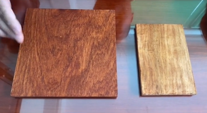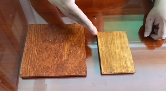 高棉花梨木材有光泽,有淡香气,但对比缅甸花梨,香气较微弱;缅甸花梨有淡淡的檀香味,夹杂着果香味。