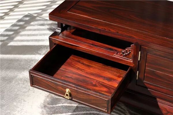 2、制作工艺方面。榫卯就是红木家具的灵魂,所以榫卯结构的要求要很严紧、不容许有填补痕迹、尺寸大小和受力结构要合理。此外,木工工艺是否精工,每个插肩是否到位,每个格(割)角是否精密、平整,所有线条/收缩缝大小是否均顺一致等,都是要注意的细节。
