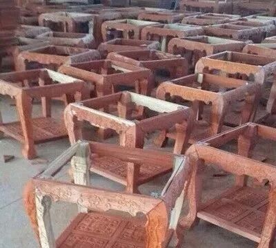 一种 是毛料局部有边材,但 把边材挖掉,用同样的心材料拼补,虽说不及整料好,但毕竟都是心材,材料不假。当然,关于“挖补”,虽然有些人支持,但它对红木家具的使用和收藏价值的影响是有争议的。
