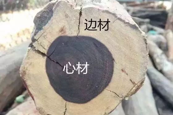 红木原料材都带有边材,木材商销售木材时,很多也都是将含有心材与边材的原木形式出售的。
