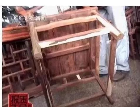 通常来说,白皮在制作红木家具时会去除掉,然而有个别不法商家却将大量白皮应用在家具部件上。