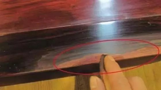 如果发现木材纹路之间的纹理呈现很大差异,或者某处无纹路时,就要当心很可能是掺杂白皮了。