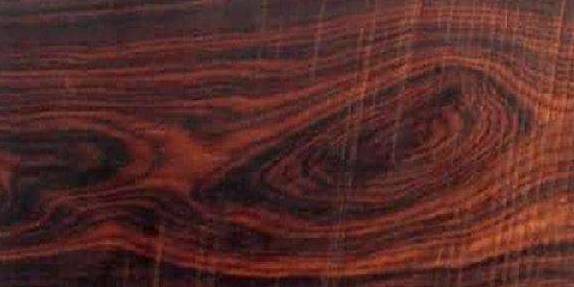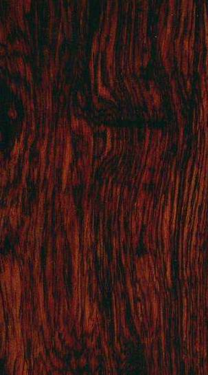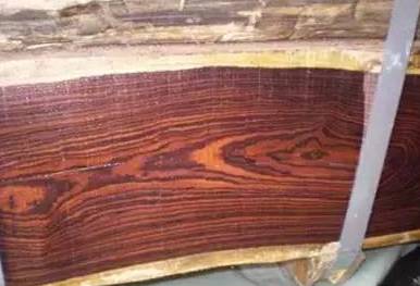 特征: 木材气味很淡,切面滑润,油质厚重。棕眼稀少,肌理紧密。边材窄,呈白色至淡黄色,心材呈深紫褐色,伴有黑色条纹,纹理均匀细密,大多为直纹。在白纸上一划,便可留下紫色痕迹。