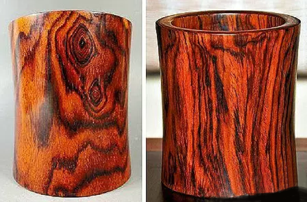 1、微凹黄檀上可见鬼脸纹 2、近似交趾黄檀的微凹黄檀笔筒