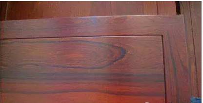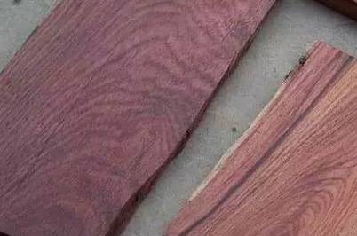 特征:心材多紫褐色、紫红色,少量黄色、黑色或紫色条纹、墨绿色条纹;原木砍伐后,端头如未及时封蜡,常温下会由两端向内颜色变深;木材在阳光下暴晒,颜色可变淡。