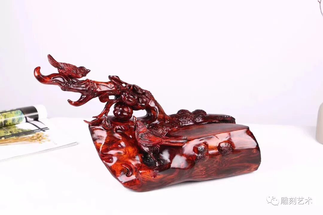 大红酸枝的木材中,含有非常的油脂,经过精心的打磨之后,其木雕工艺品极其具有光泽。