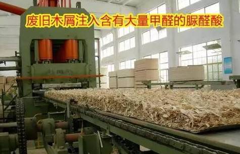 接下来看看有些不法厂家刨花板 锯木压缩版板的制作过程: