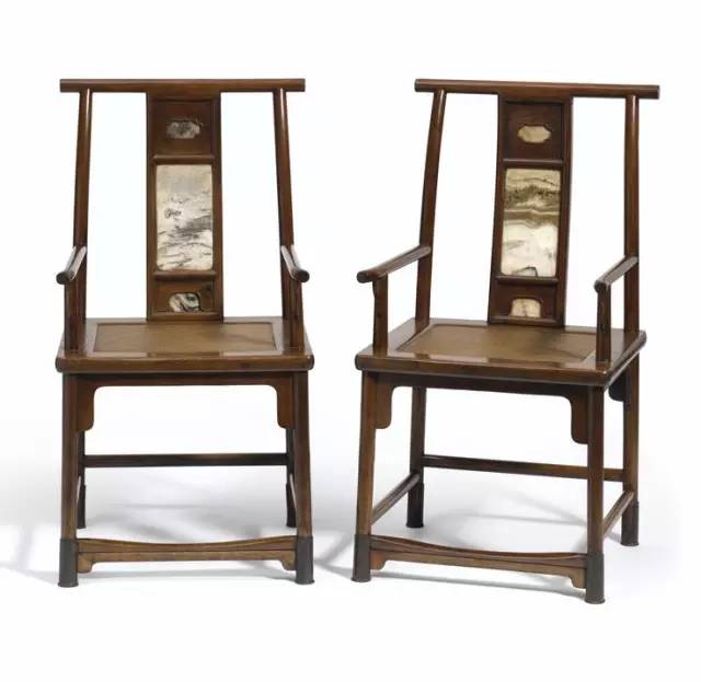 ▲一对黄花梨高背扶手椅(嵌大理石板),17世纪