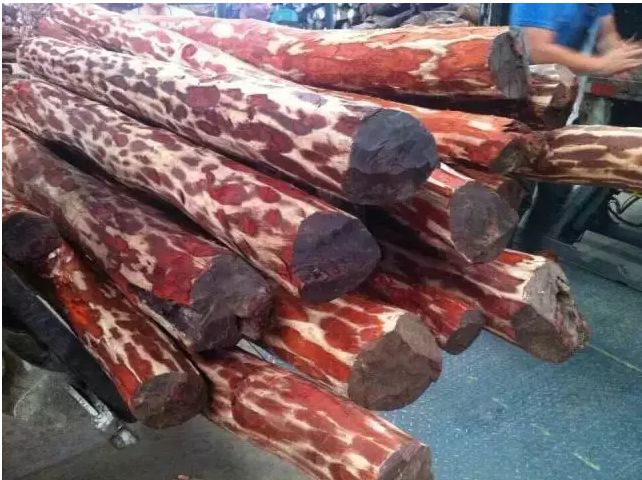 边材与心材区别极明显,边材灰白至灰褐色,心材显现红褐色至栗褐色,深色条纹分布均匀细密,比较连续,边缘清晰。新切面微有酸香气,久则无特殊滋味。在中高端红木家具市场占有一定的市场占有量。