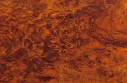 花梨木的花纹相较黄花梨来说变化较少,花纹略显散乱,没有章法,且纹路不够细密,棕眼较粗大。