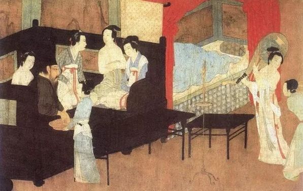 《韩熙载夜宴图》中,就有斜靠罗汉床净手的画面。