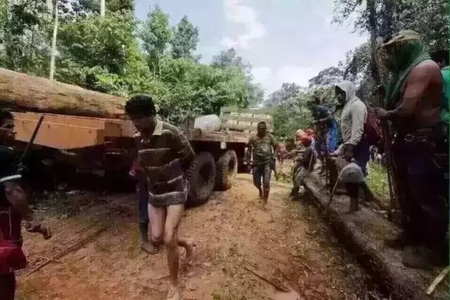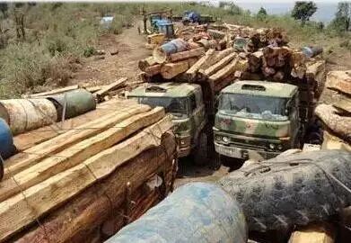 2 路上到处是被抓的运输木头的车。