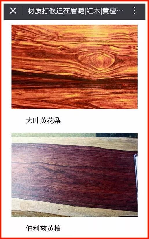 该文在分析 [红木国标修订即将落地,“大叶黄”入围呼声高] 的同时,也以 [打假迫在眉睫,杜绝以假乱真牟取暴利] 介绍了市场上“冒充大叶黄花梨”的三种木头:黑漆木、紫油木、伯利兹黄檀。