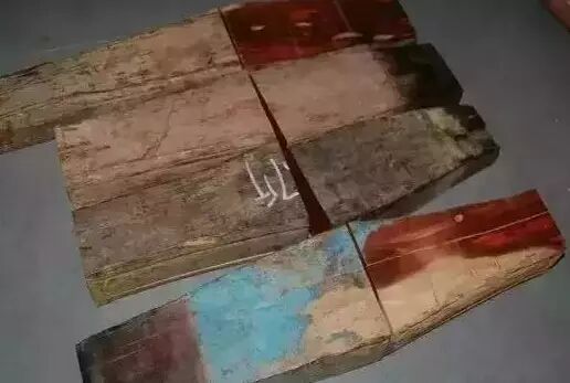 近年来,市面上出现了一种紫檀拆房老料的说法,据说是从印度庙里或老房子拆下来的,号称老料。紫檀拆房老料表面一般都刷有一层彩色建筑的油漆,带有一种沧桑感。