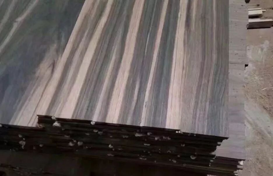 纹理炫理,颜色以灰黑为主。国内某航母级的红木企业,将其漂白染色成花梨木的颜色进行售卖。