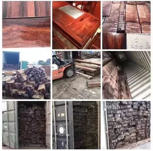 基本都是薄板、精方、套料、半成品、白坯进口,原木相对较少。木质以黑褐色为主,成品大多漆饰成红色。