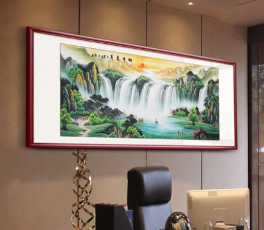 山水画摆法较为讲究,一般适合摆在全屋座方(门的另一方)或居室坐椅、睡床位置的左手边,山势平圆的画亦可挂在书桌后面作为“靠山”,能增加贵人运。