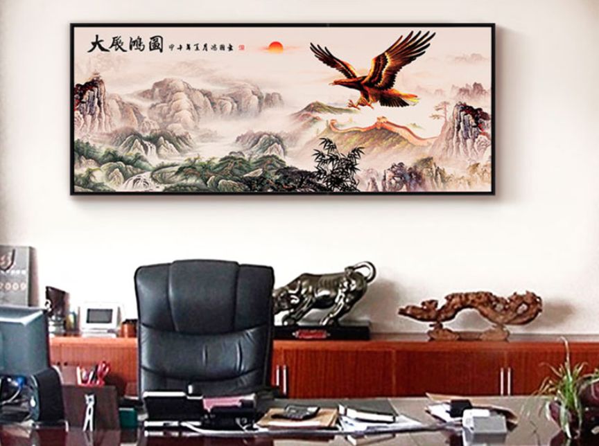 大鹏展翅图通常被挂在书房及客厅,带给人一种“鹏程万里”的积极向上心境。