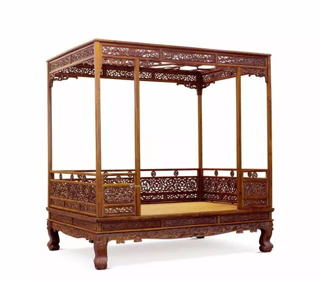 此床制作精细繁缛,觉其堂皇富丽、仪态雍容,却无过分雕饰、重复堆砌之感,堪称明式家具中"秾(nóng,花木繁盛)华"的典型范例。可见,尽管简练朴质是明代家具的主流,但高度装饰,豪贵华美却又典雅不俗的作品也同时存在。